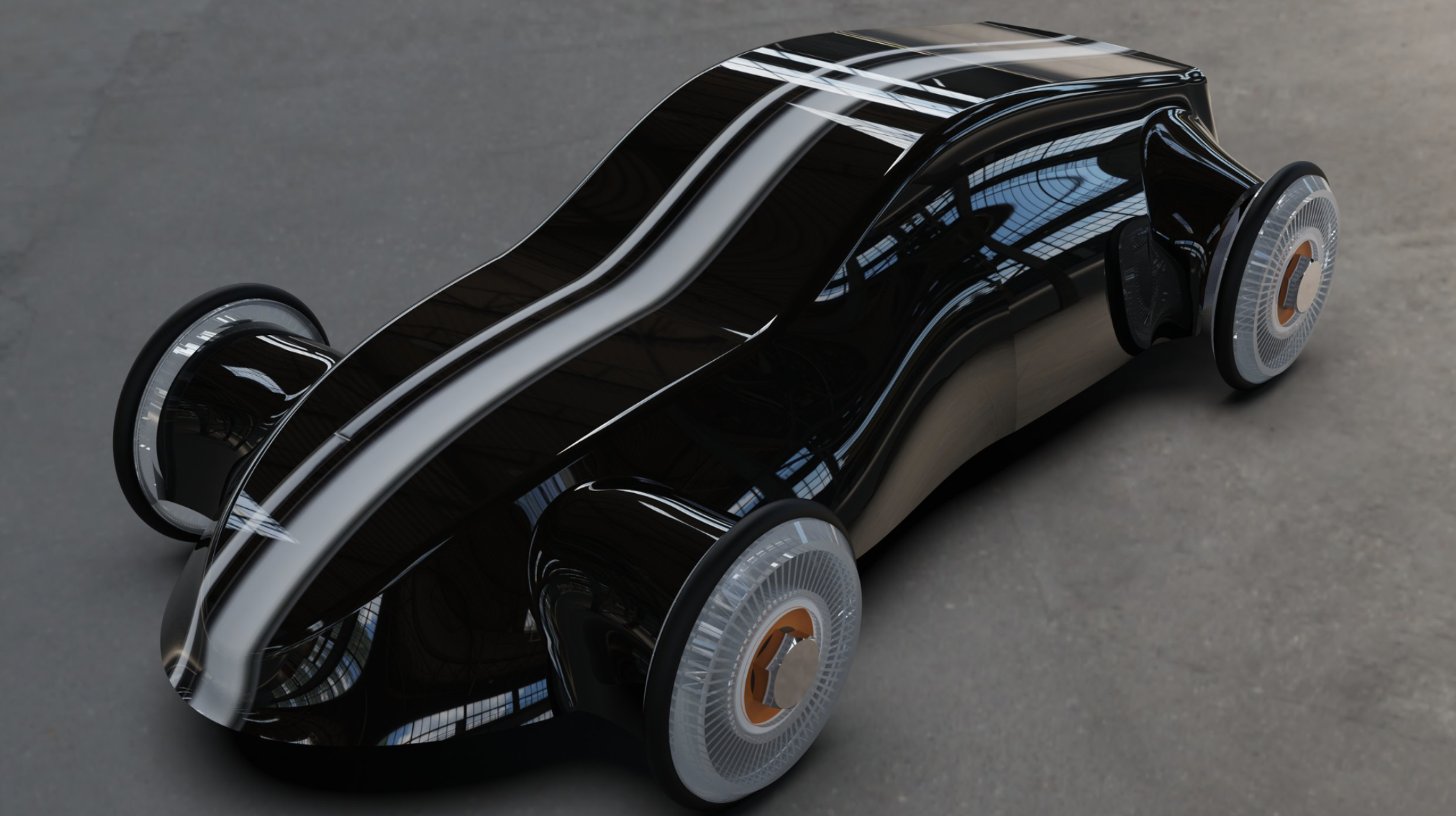 This car blends vintage charm with a sense of speed and sophistication. With a sleek, aerodynamic silhouette and a bold black finish accented by a striking white stripe, it exudes both retro allure and modern performance. The design combines classic elements with a fast, sexy edge - creating a vehicle that looks as powerful as it drives. Every curve and detail is crafted to evoke the spirit of the past while pushing the boundaries of contemporary style.