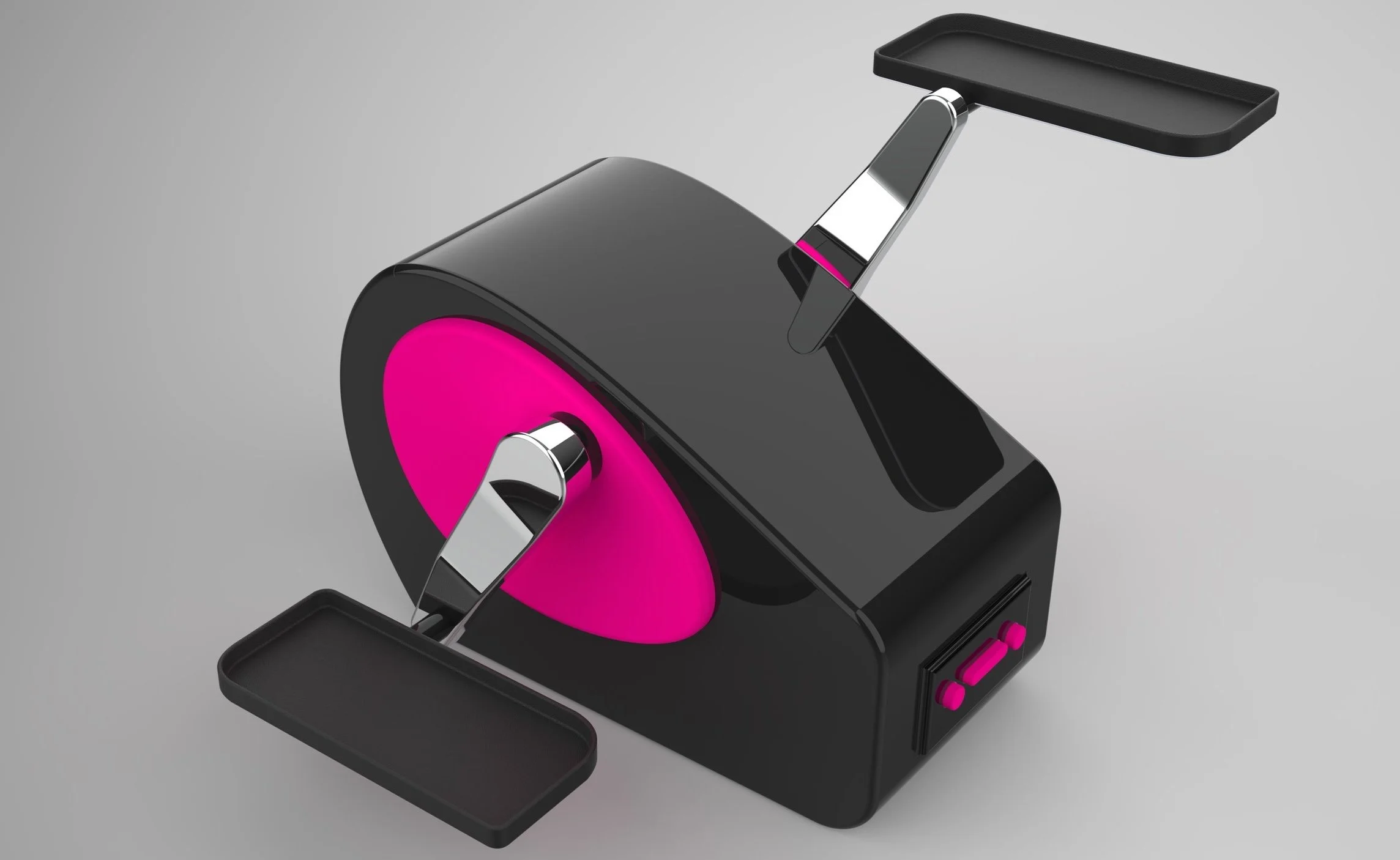 This functional and beautiful piece of equipment motivates users to exercise while they work. Created for my sister, who works from home. Unlike typical bulky, black workout gear, the Pedi is lightweight, colorful, and designed to be displayed, not hidden away.