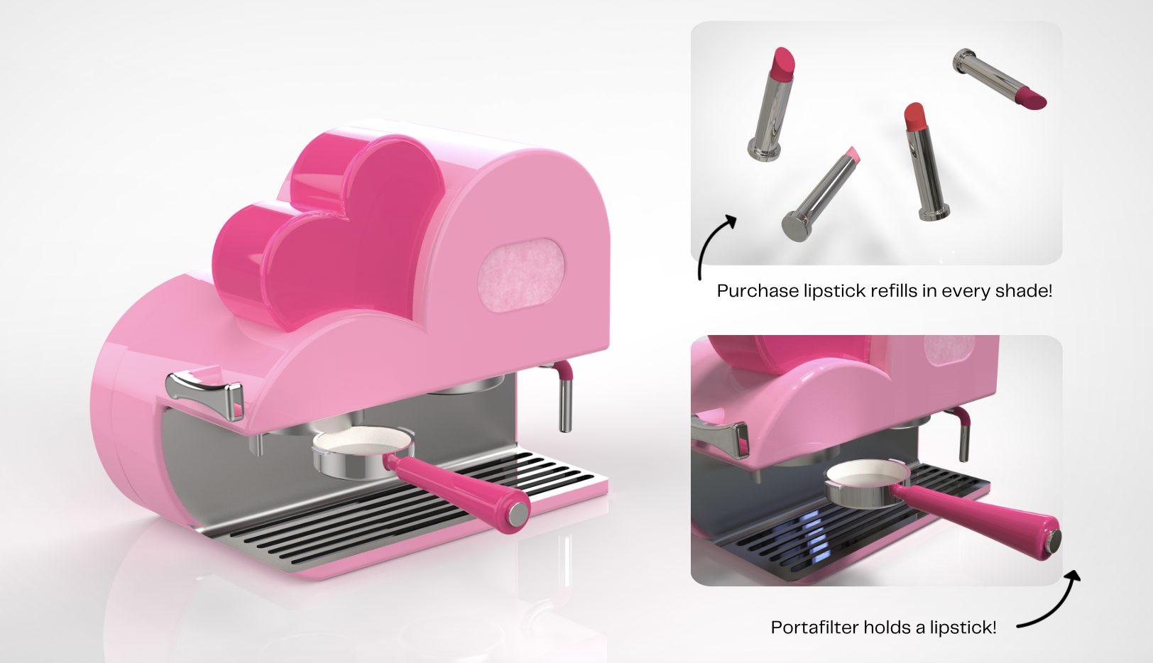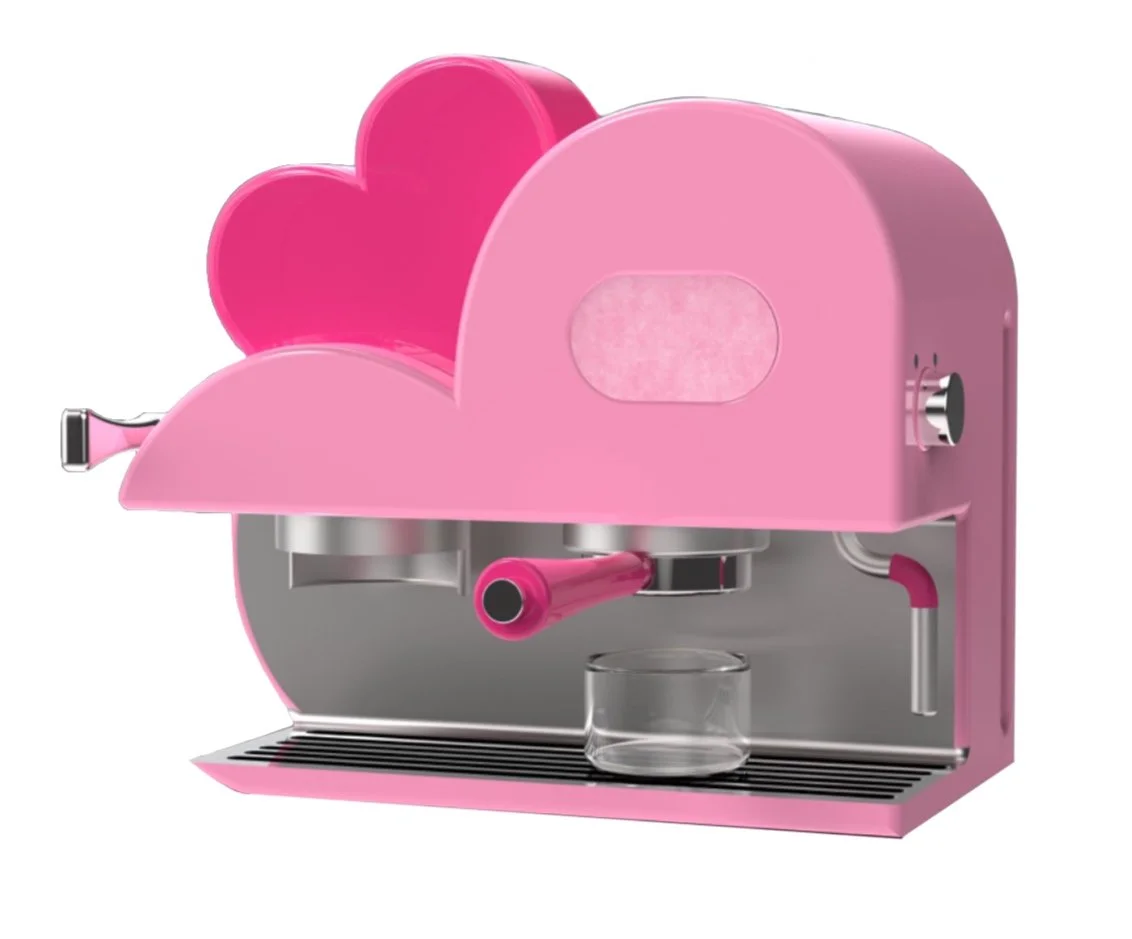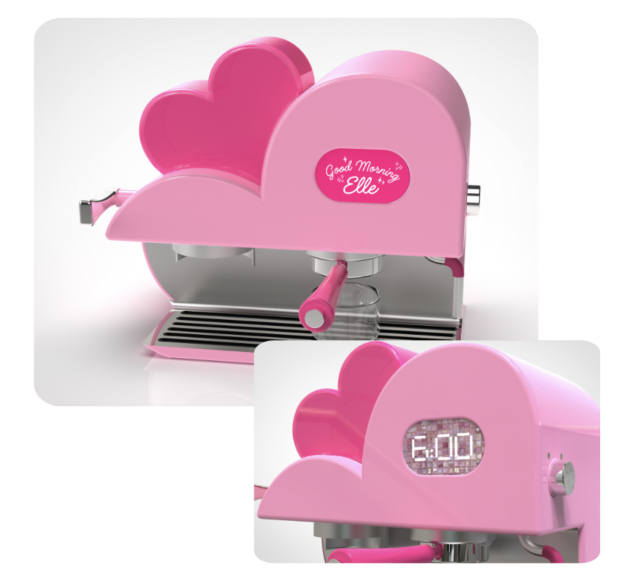 How might we design an espresso machine inspired by the movie character Elle Woods from Legally Blonde. Reflecting her bold personality and fashionable aesthetic.
