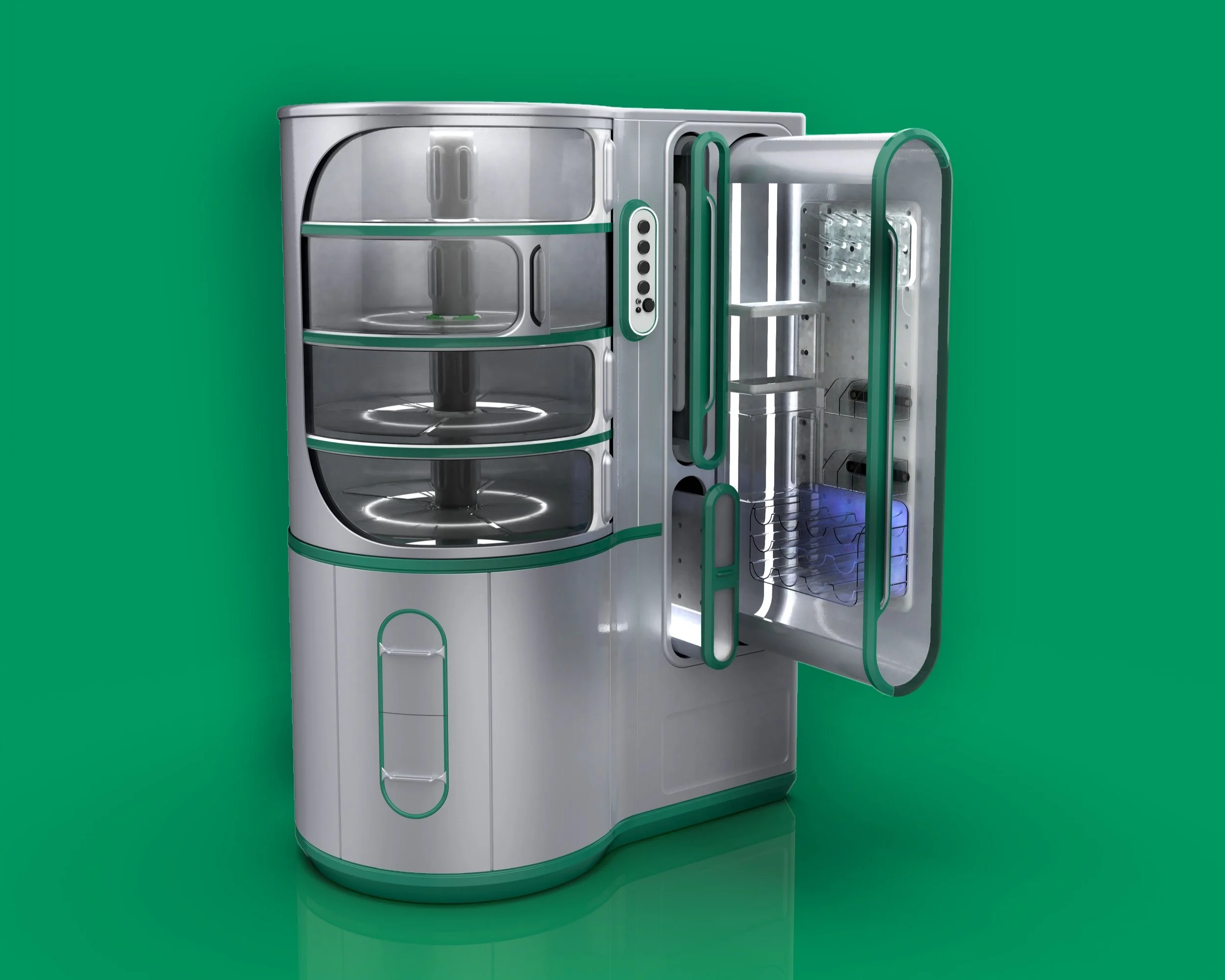 This semester long group project prompt was to create a design solution to food waste and energy generation that promotes sustainable practices. To create a waste-to-energy appliance that processes organic waste to generate clean energy in a closed loop cycle.